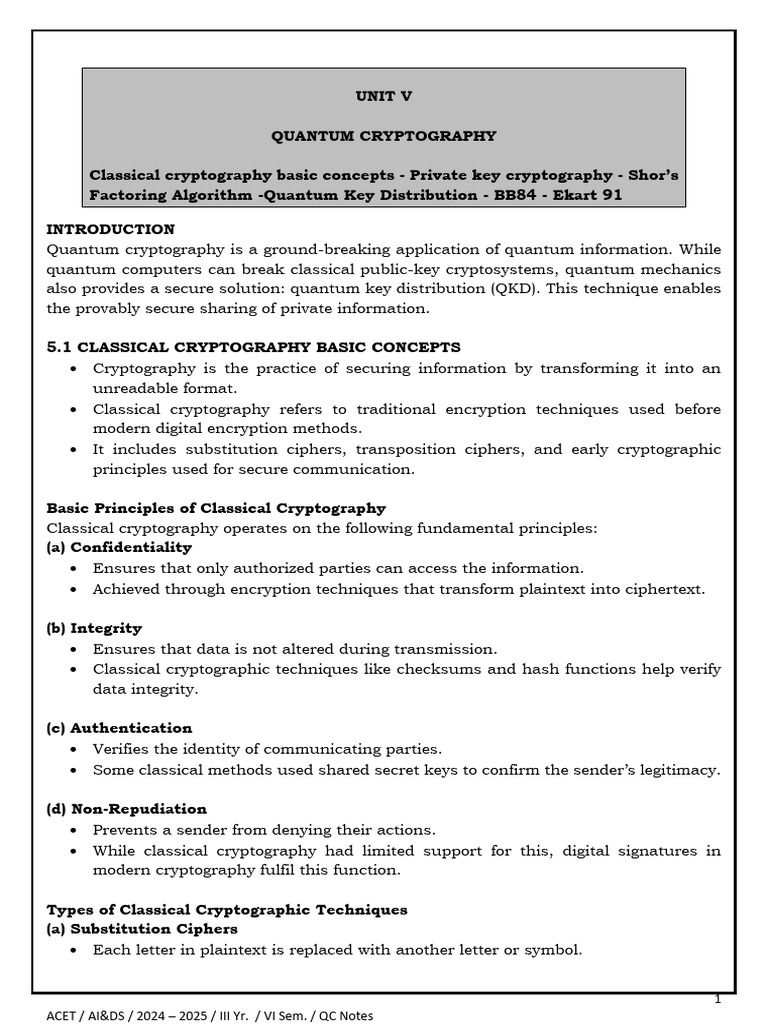 • Classical cryptography refers to traditional encryption techniques used before