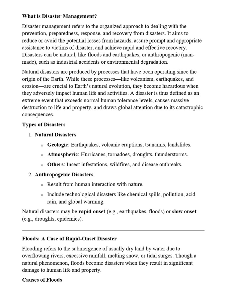 Disasters can be natural, like floods and earthquakes, or anthropogenic (man-