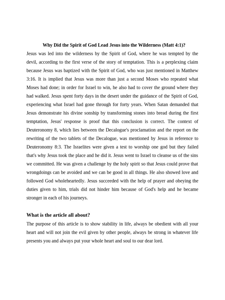 know if he would be tempted, the Spirit of God led him to the desert for 40 days. For