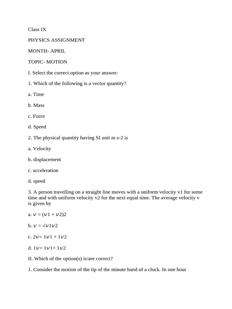 III. Classify the following in uniform or non-uniform motion: