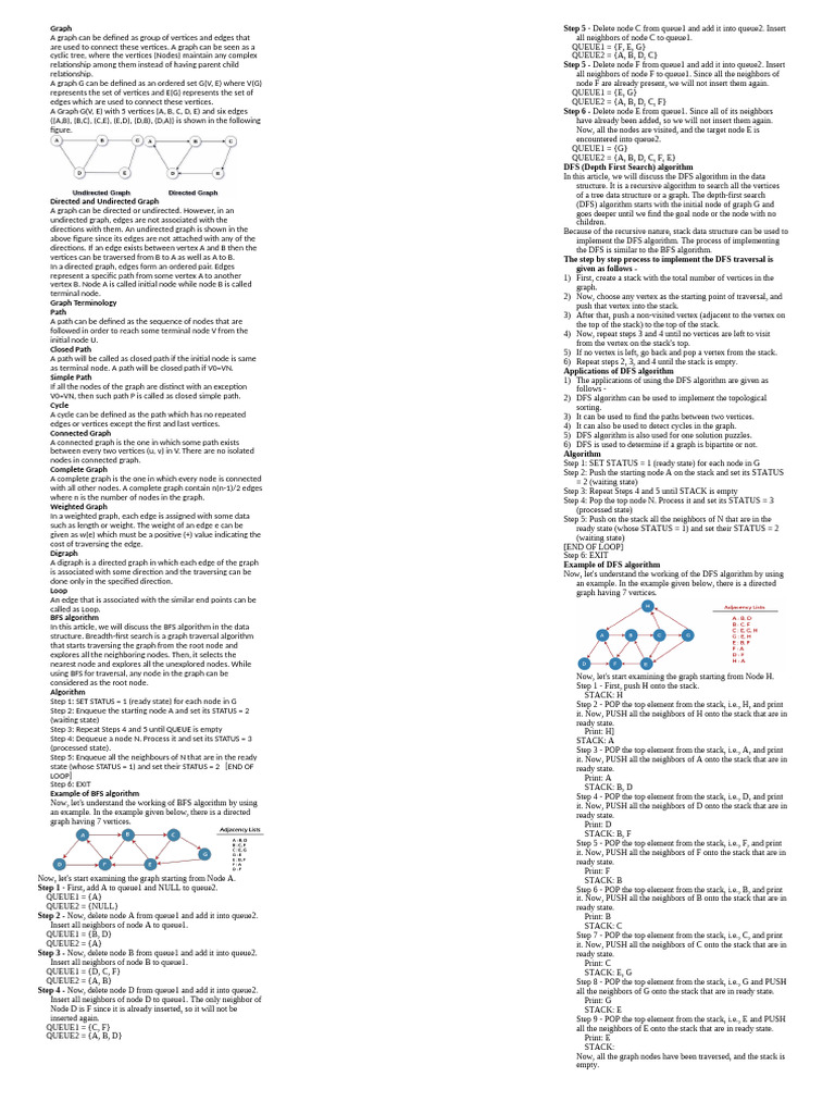 directions. If an edge exists between vertex A and B then the the DFS is similar to the BFS algorithm.