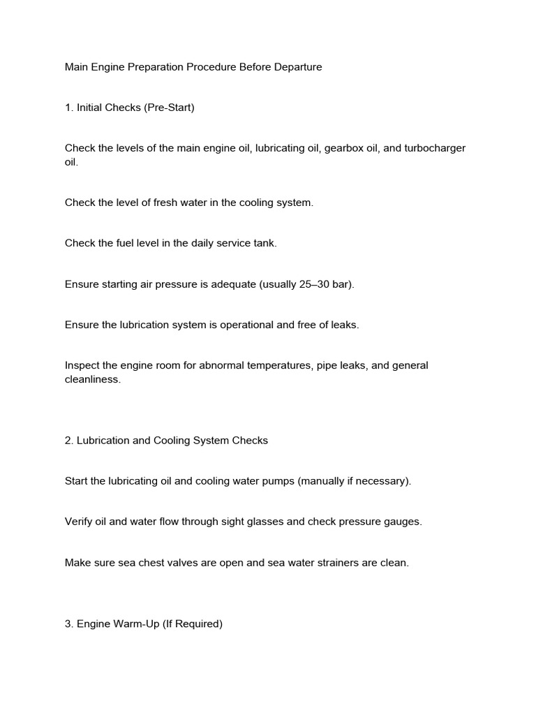 Main Engine Preparation Procedure Before Departure