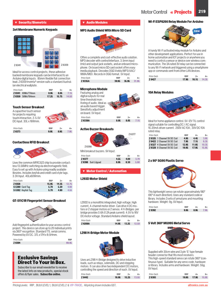 current, 4-channel motor driver. Can drive 4 DC mo- Price Each RRP 4+ 6+