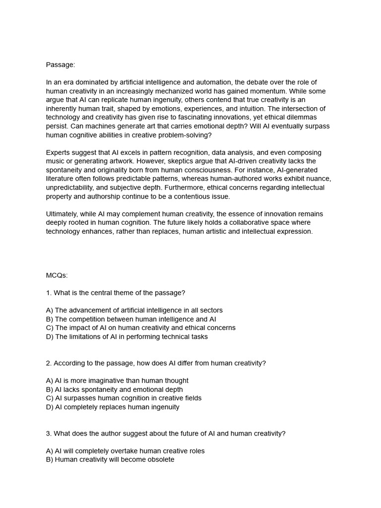 spontaneity and originality born from human consciousness. For instance, AI-generated