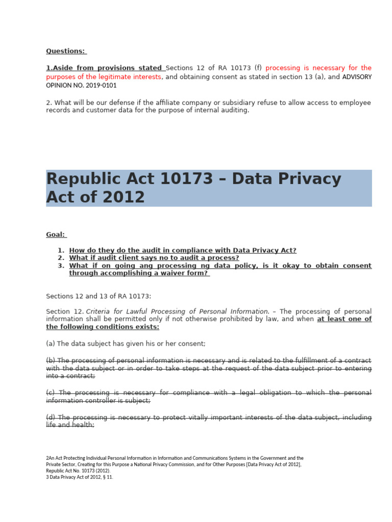 Republic Act 10173 – Data Privacy