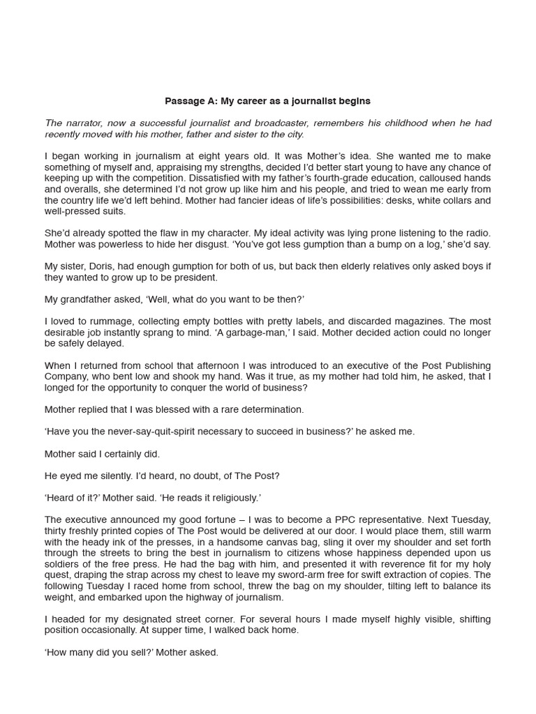 Passage A: My career as a journalist begins