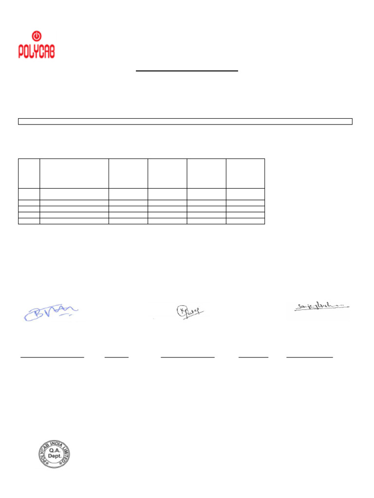 Note : 1. The cable under test confirms the requirements of reference standard with amendments & data sheet.