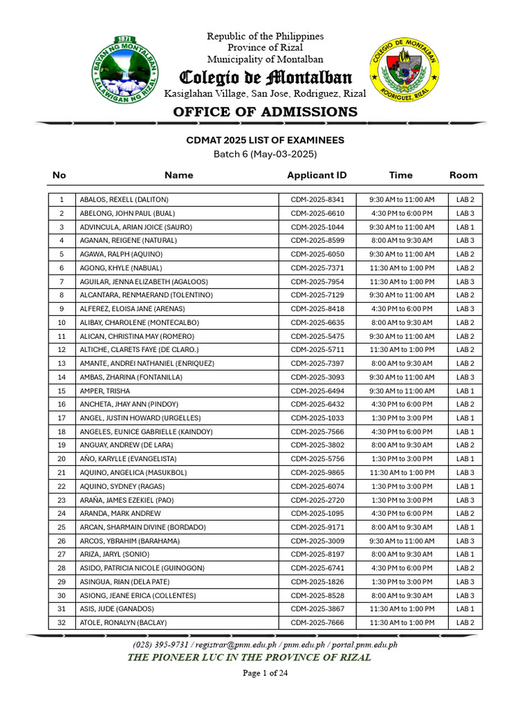 CDMAT 2025 LIST OF EXAMINEES