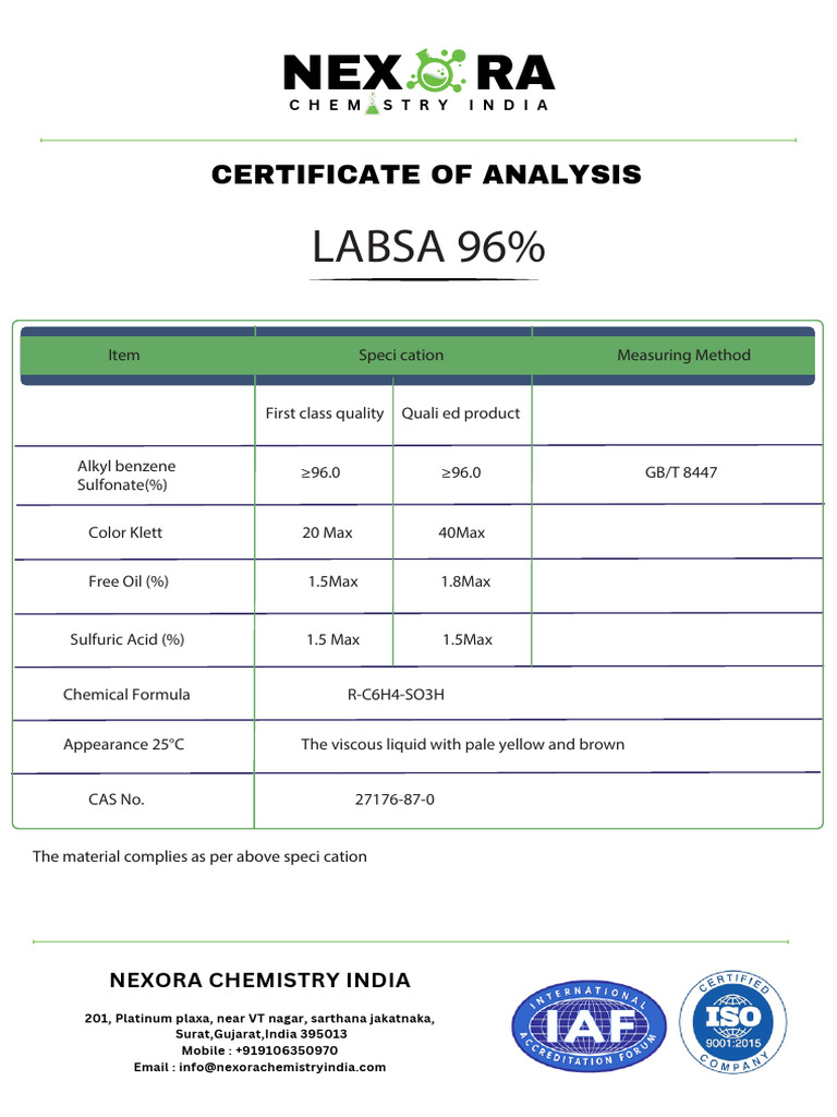 Alkyl benzene ≥96.0 ≥96.0 GB/T 8447