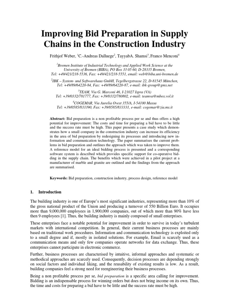 Improving Bid Preparation in Supply Chains in the Construction Industry
