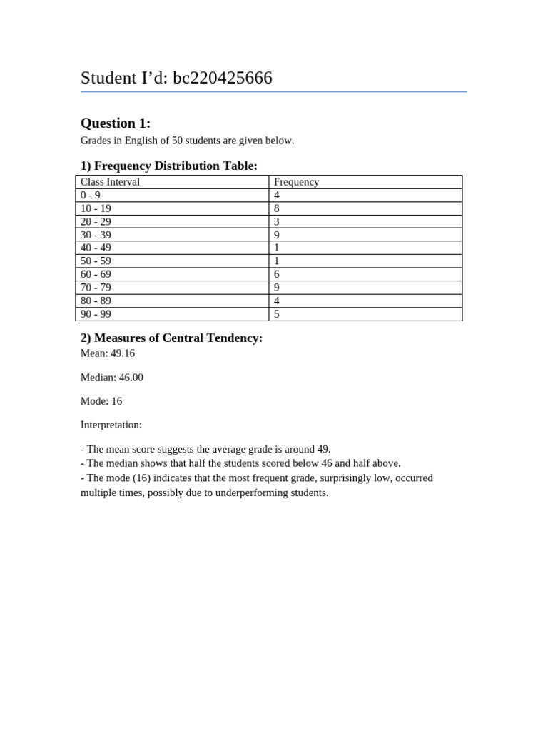 - The mode (16) indicates that the most frequent grade, surprisingly low, occurred