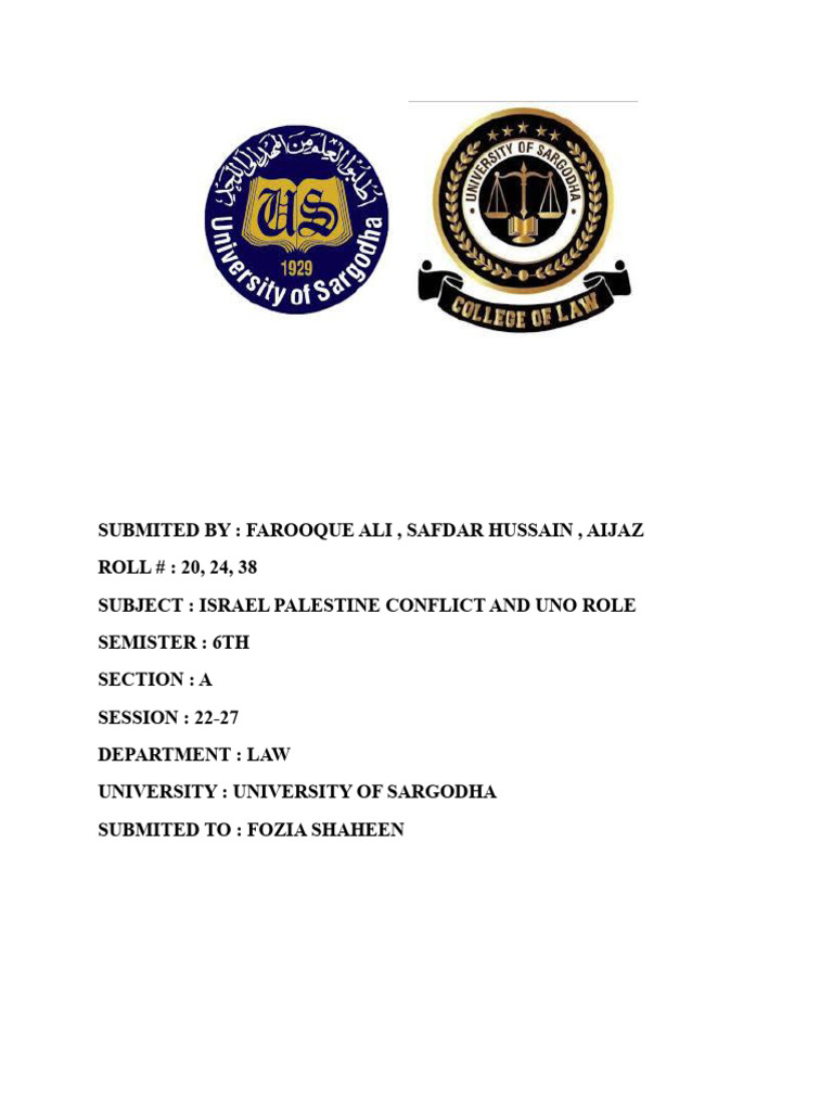 SUBJECT : ISRAEL PALESTINE CONFLICT AND UNO ROLE