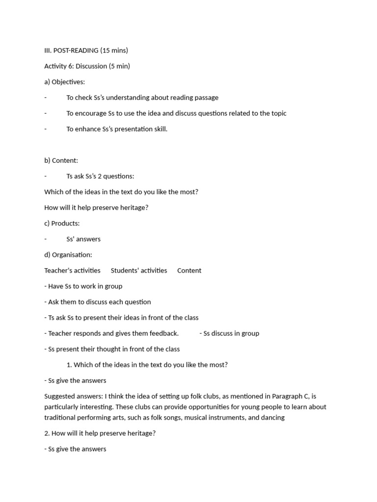- Ts ask Ss’s to complete the mindmap to summarize the content of reading passage