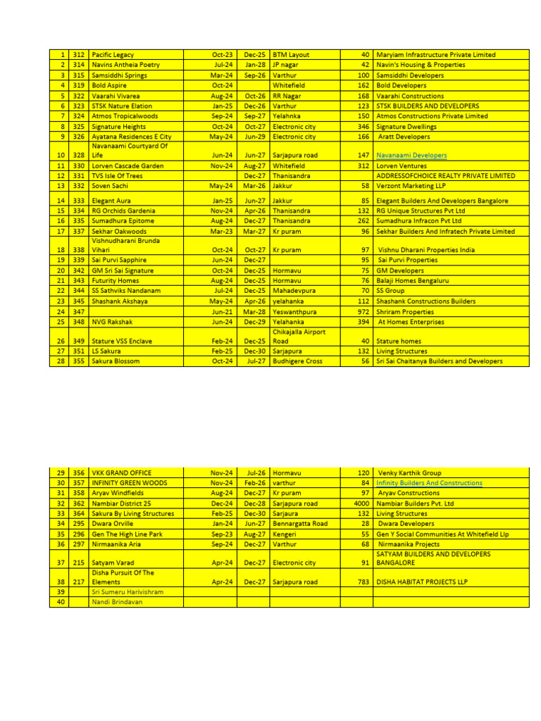 8 325 Signature Heights Oct-24 Oct-27 Electronic city 346 Signature Dwellings
