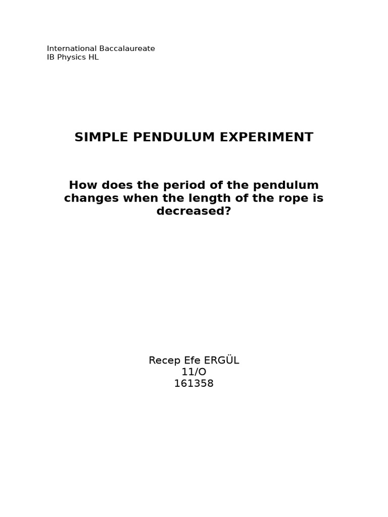 pendulum, which will be systematically reduced in increments of 10 cm