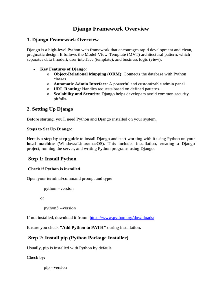 local machine (Windows/Linux/macOS). This includes installation, creating a Django