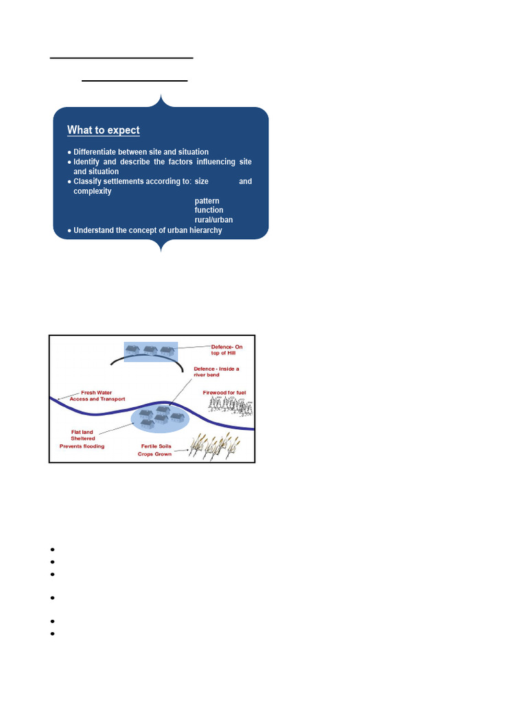 1 Refer to FIGURE 16.4 below showing site and situation factors of various settlements.