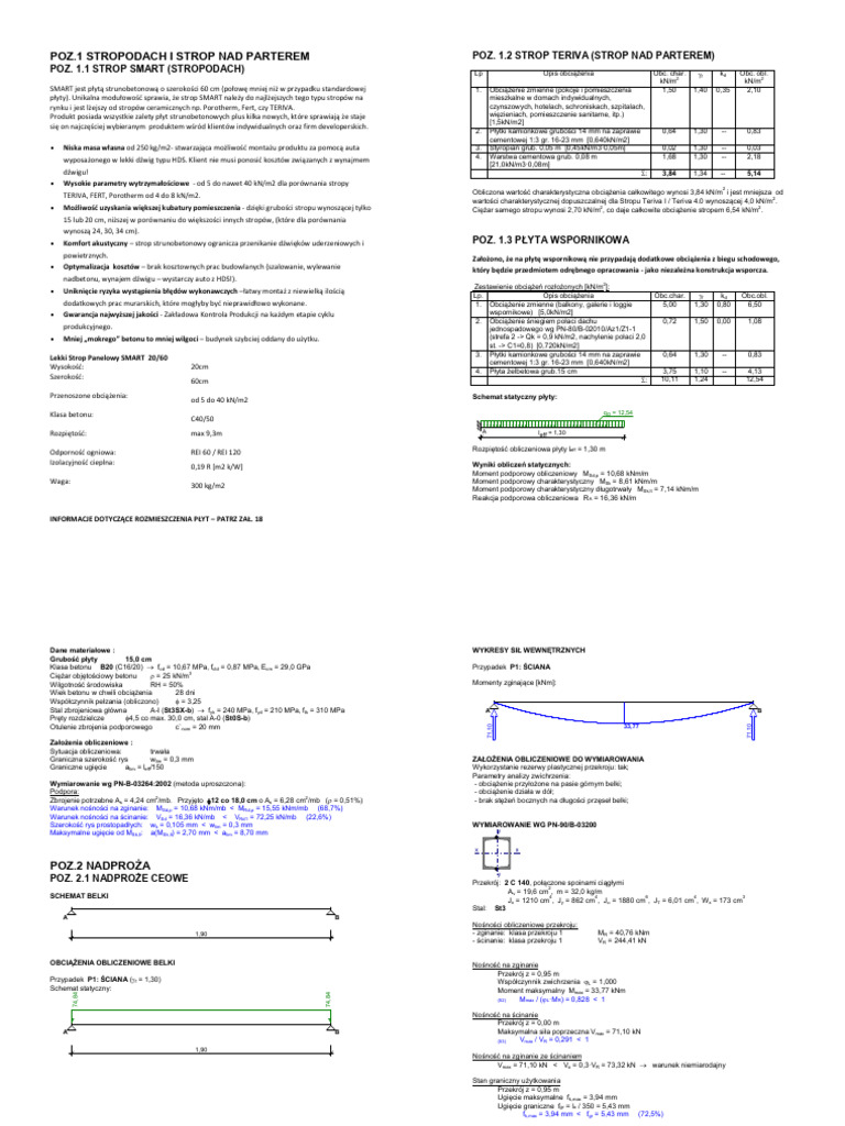 Warunek nośności na zginanie: MSd,p = 10,68 kNm/mb < MRd,p = 15,55 kNm/mb (68,7%)