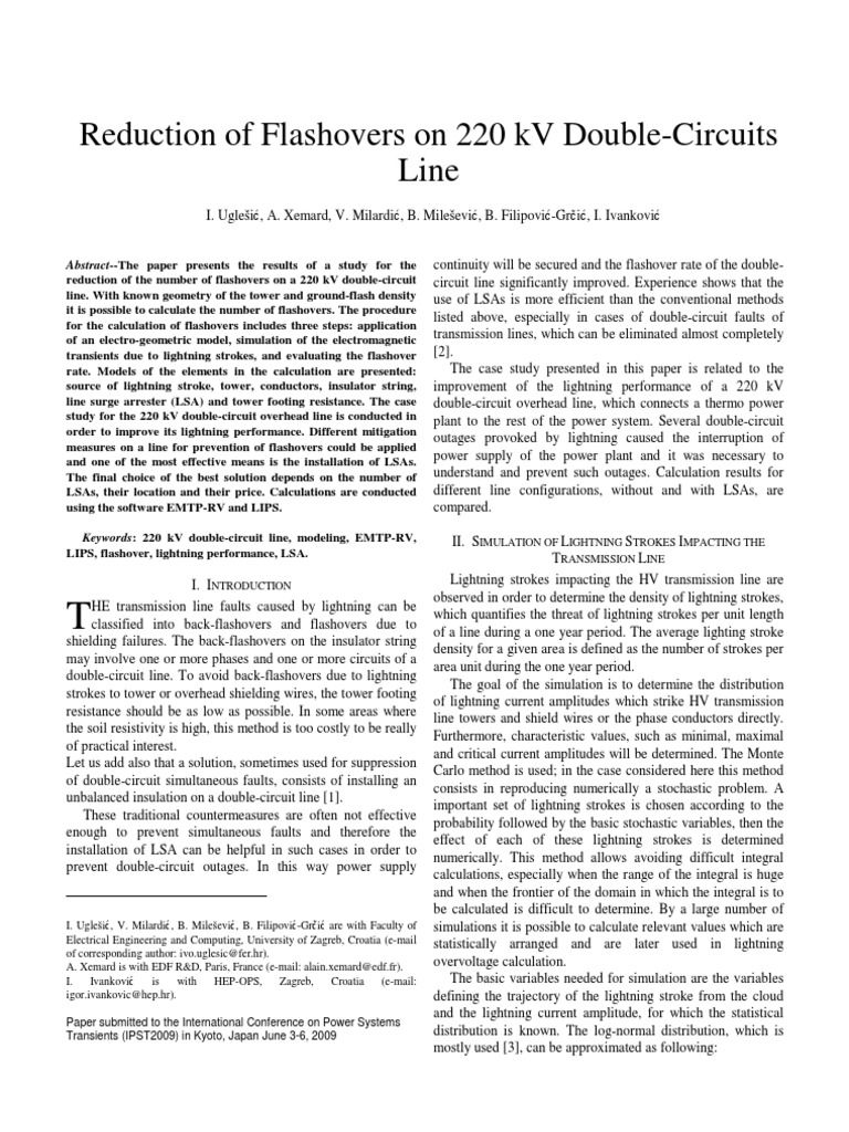 Keywords: 220 kV double-circuit line, modeling, EMTP-RV,