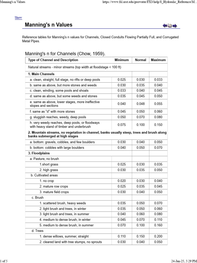 Manning's n Values https://www.fsl.orst.edu/geowater/FX3/help/8_Hydraulic_Reference/M...