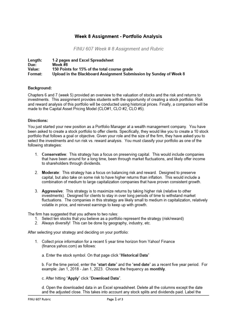 Rubric: Evaluation Criteria for Week 8 Assignment - Portfolio Analysis