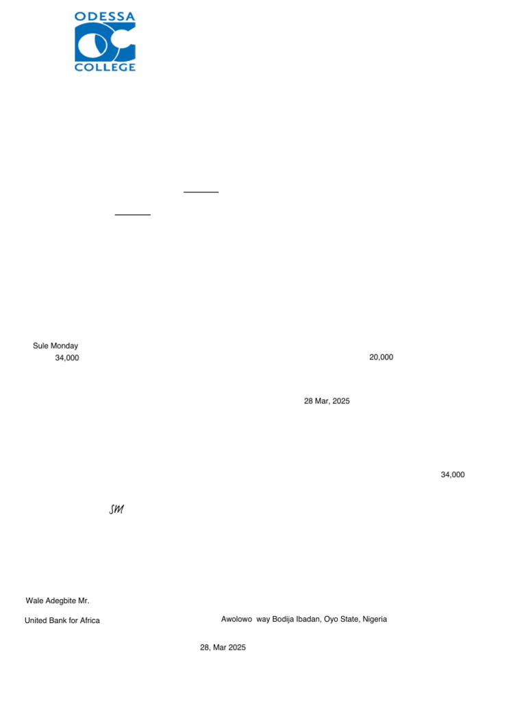Sule Monday certify that the total amount of money that I have available is (family’s