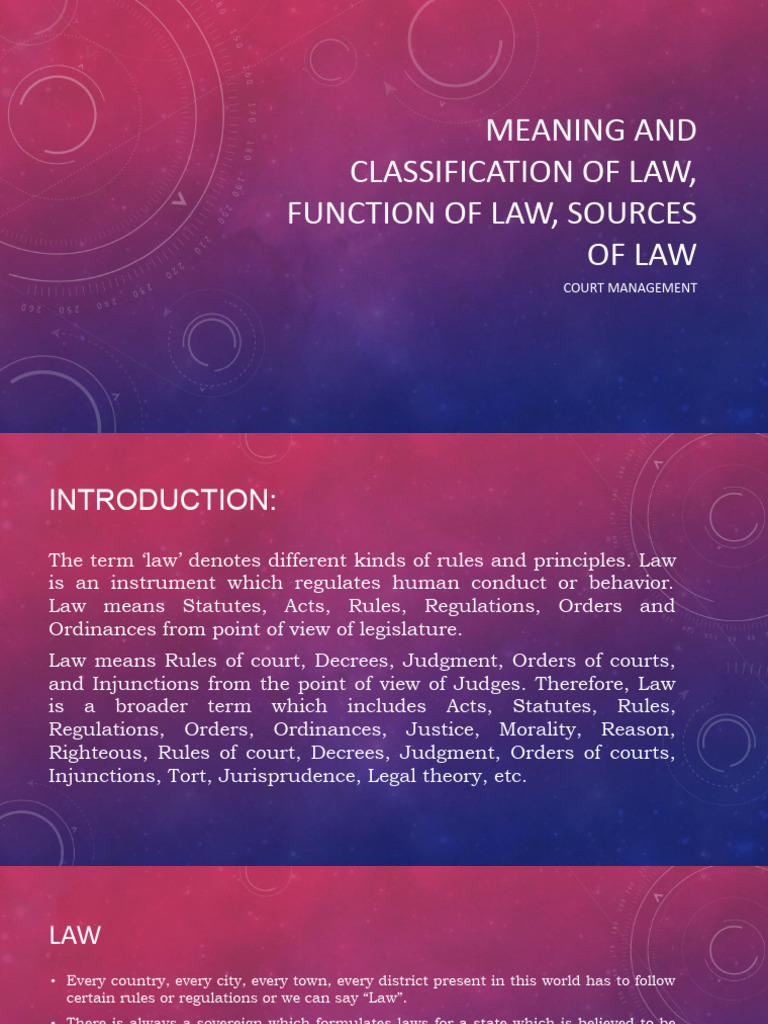 FUNCTION OF LAW, SOURCES