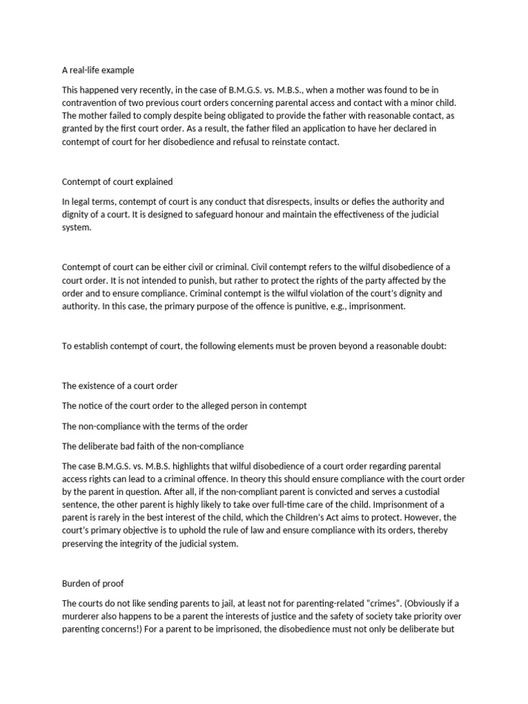 The case B.M.G.S. vs. M.B.S. highlights that wilful disobedience of a court order regarding parental