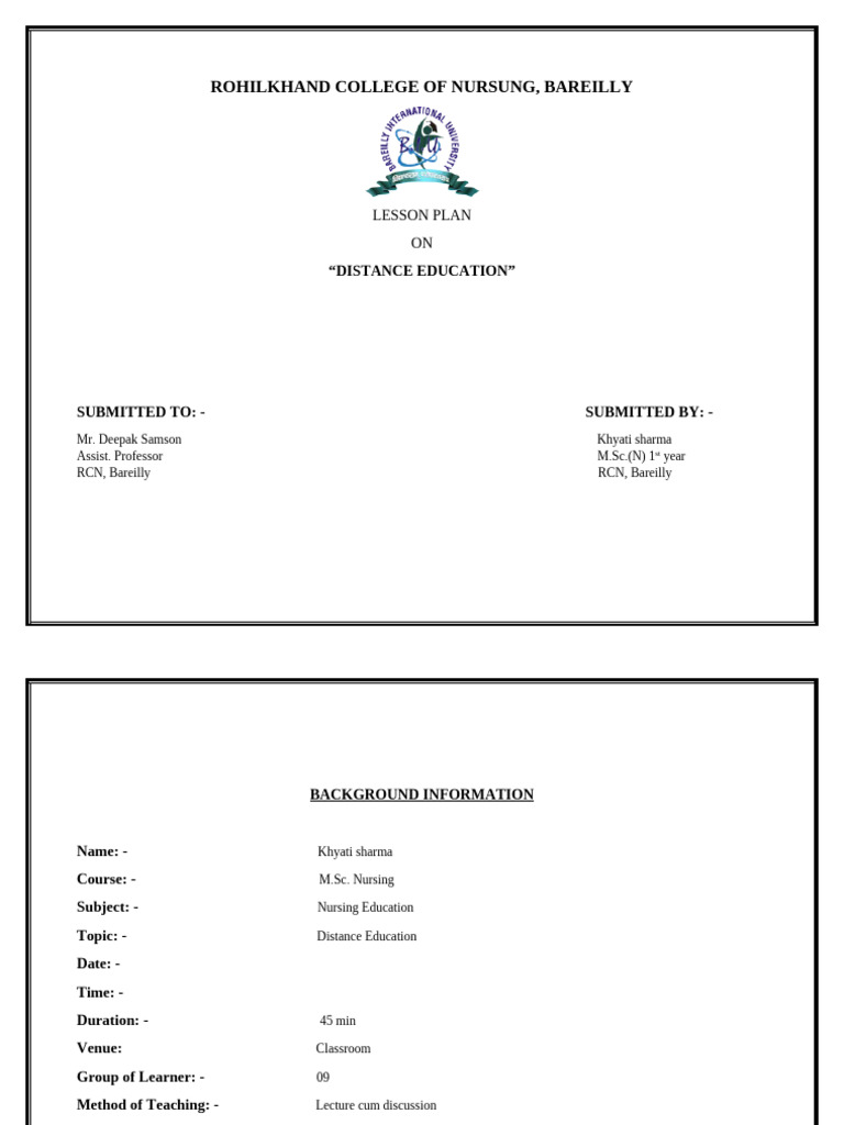 Subject: - Nursing Education