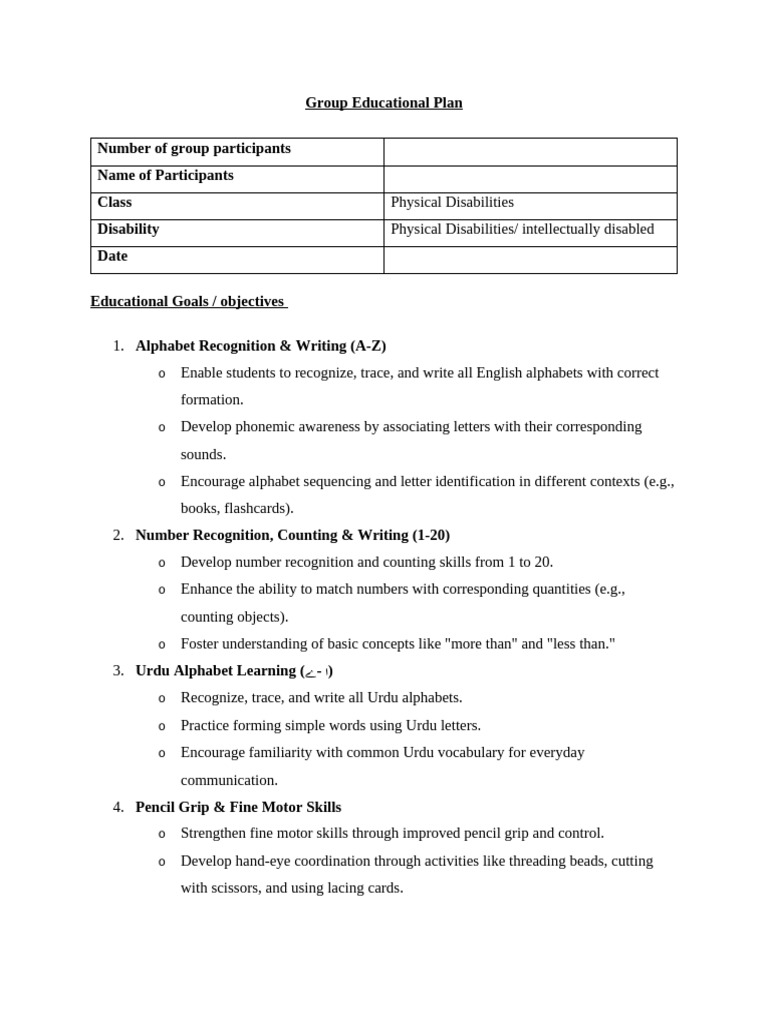 Group Educational Plan