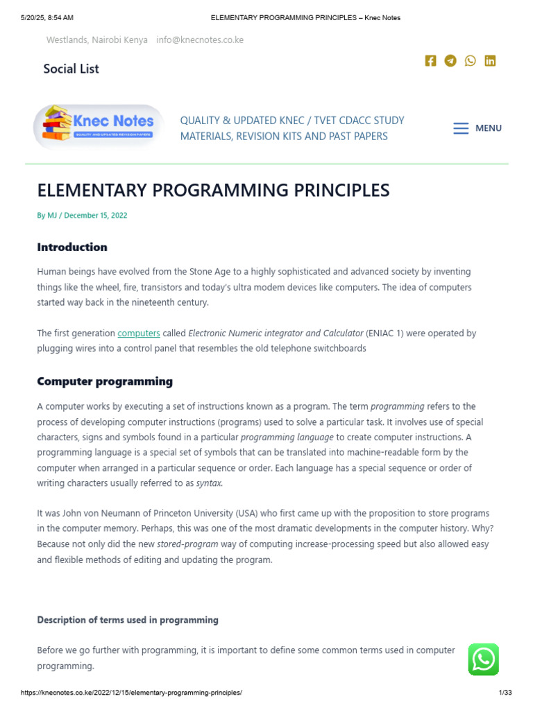 5/20/25, 8:54 AM ELEMENTARY PROGRAMMING PRINCIPLES – Knec Notes