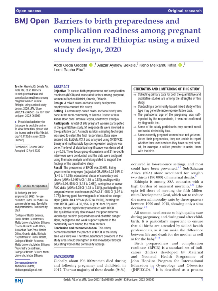 15 Solnes Miltenburg A, Roggeveen Y, van Roosmalen J, et al. 29 Tafa A, Hailu D, Ebrahim J, et al. Birth preparedness and