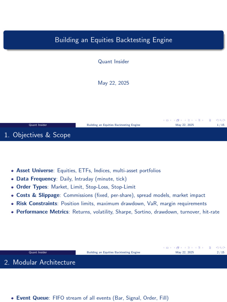 Quant Insider Building an Equities Backtesting Engine May 22, 2025 2 / 15