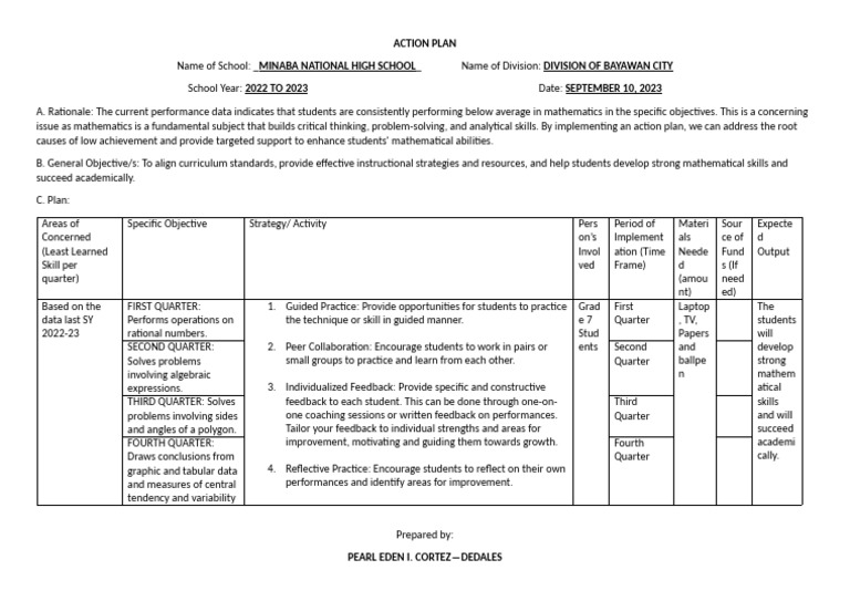issue as mathematics is a fundamental subject that builds critical thinking, problem-solving, and analytical skills. By implementing an action plan, we can address the root