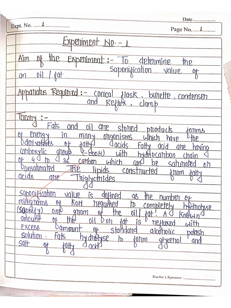 The document outlines various laboratory experiments, including procedures for determining initial values, estimating nickel amounts, and preparing aspirin. It includes detailed steps for chemical reactions, calculations, and results for each experiment. The document also contains signatures from teachers and students, indicating the completion of the practical work.