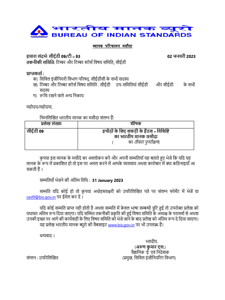 undersigned at the above address or preferably through e-mail to ced9@bis.gov.in.