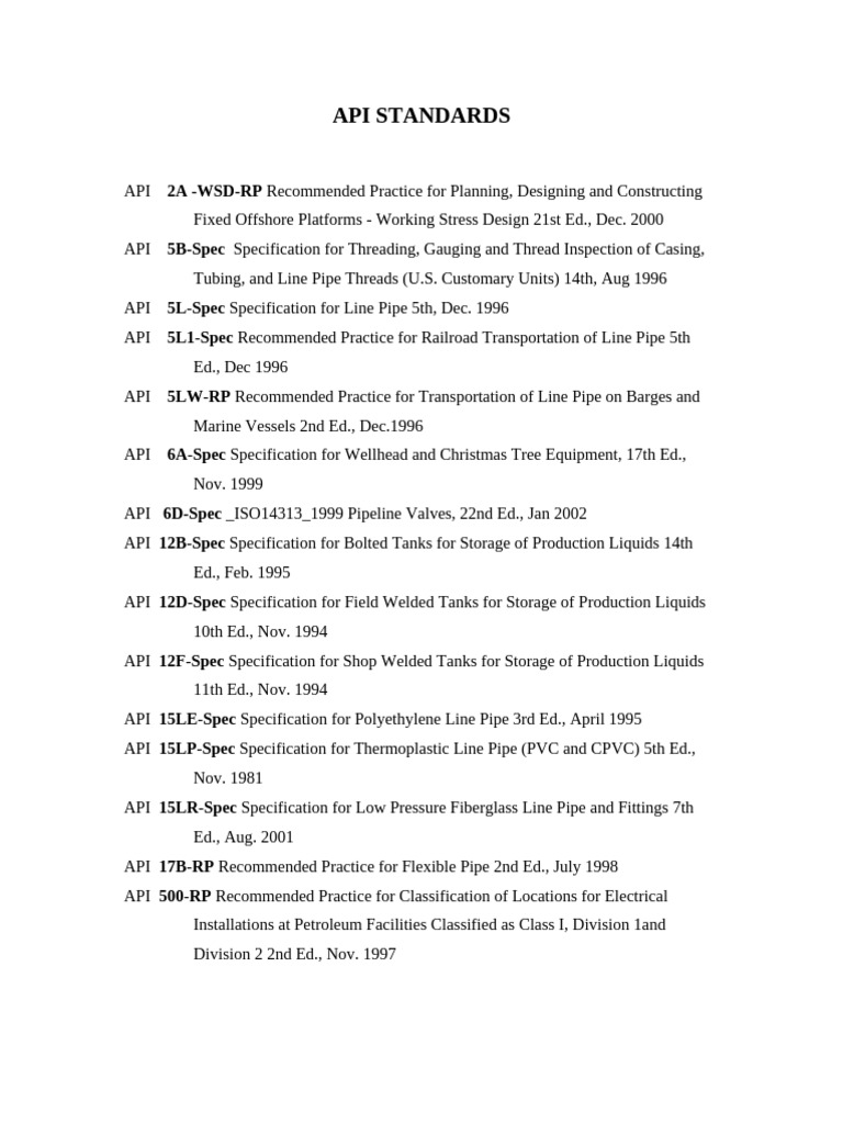 API 5L-Spec Specification for Line Pipe 5th, Dec. 1996