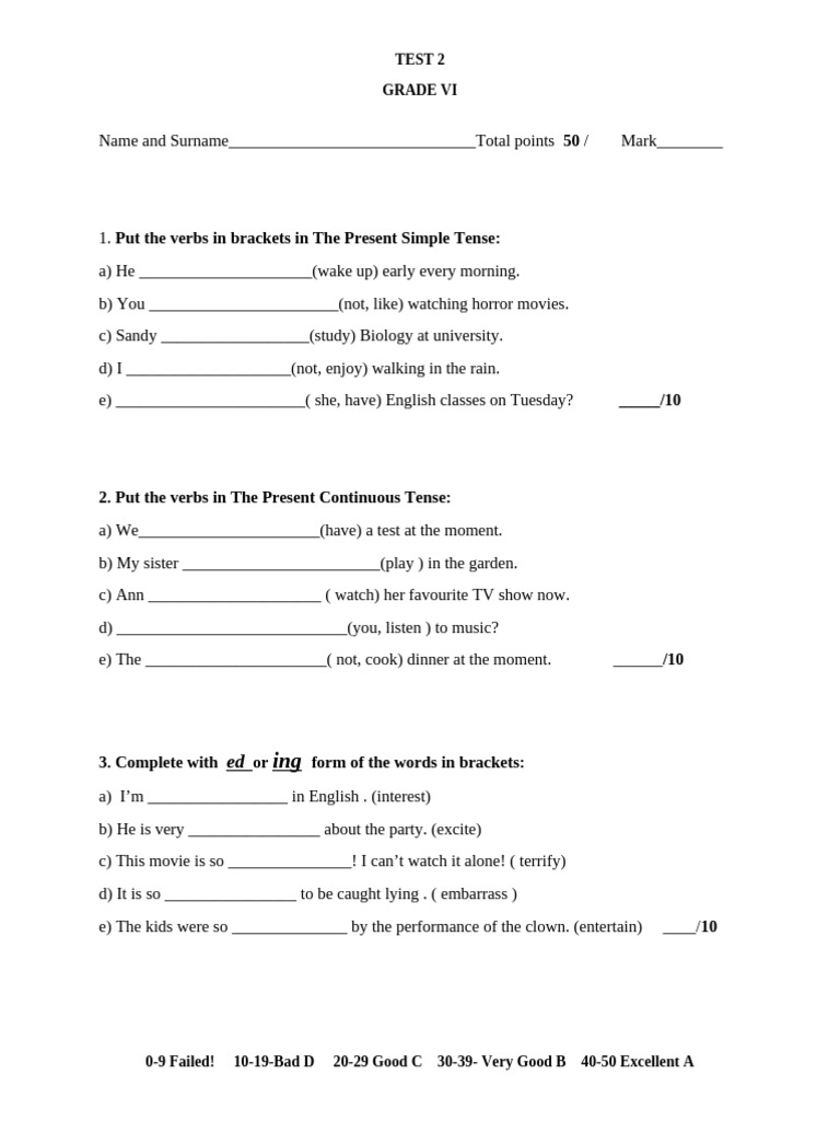 e) _______________________( she, have) English classes on Tuesday? _____/10