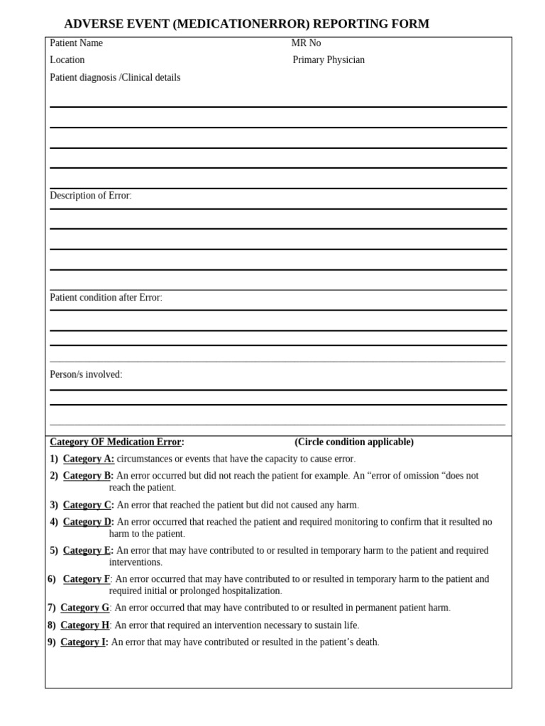 ADVERSE EVENT (MEDICATIONERROR) REPORTING FORM