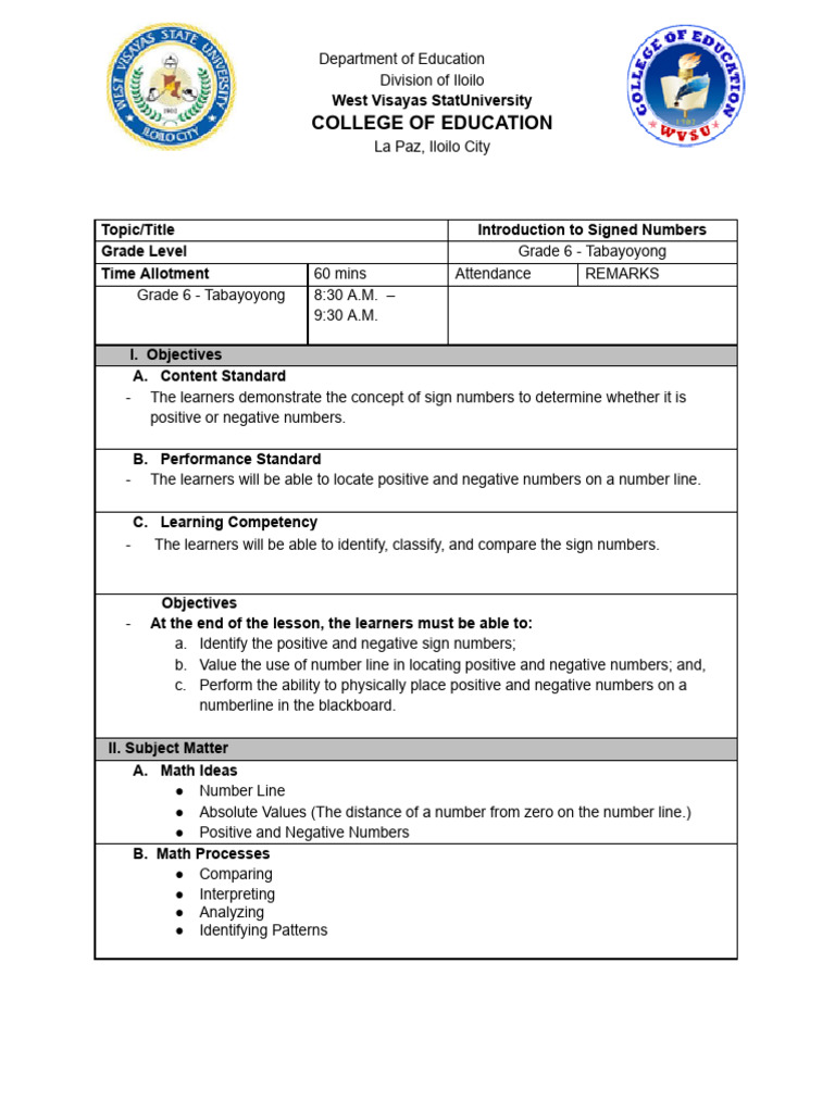 - The learners will be able to identify, classify, and compare the sign numbers.