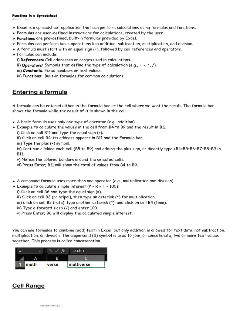 ➢ Formulas can perform basic operations like addition, subtraction, multiplication, and division.