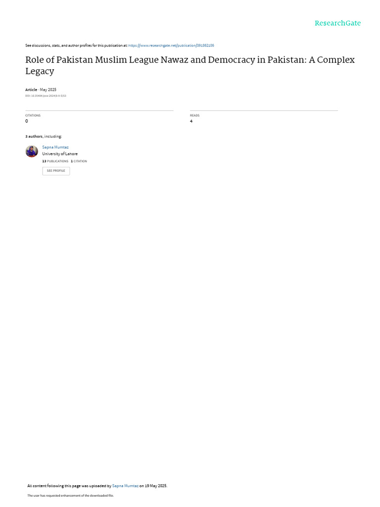 Nawaz (PML-N) and democracy in Pakistan. The study suggest that this complex