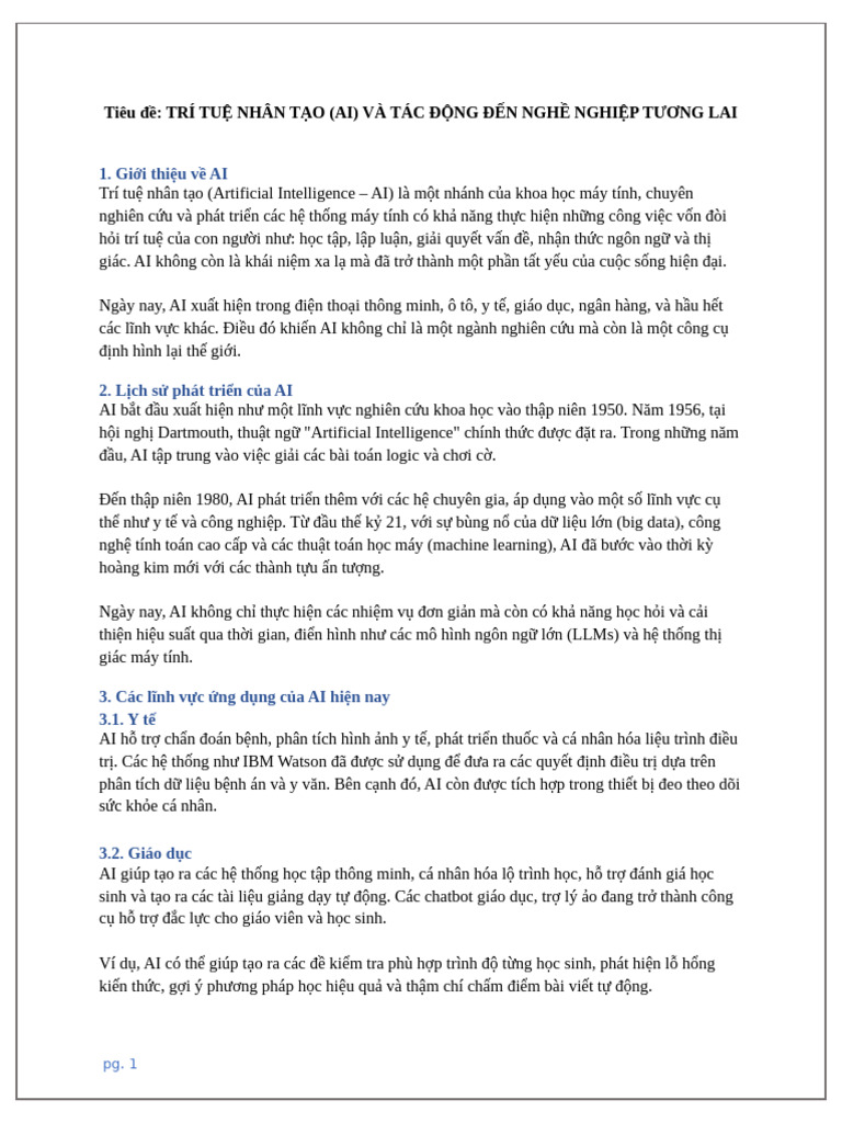 Tiêu đề: TRÍ TUỆ NHÂN TẠO (AI) VÀ TÁC ĐỘNG ĐẾN NGHỀ NGHIỆP TƯƠNG LAI