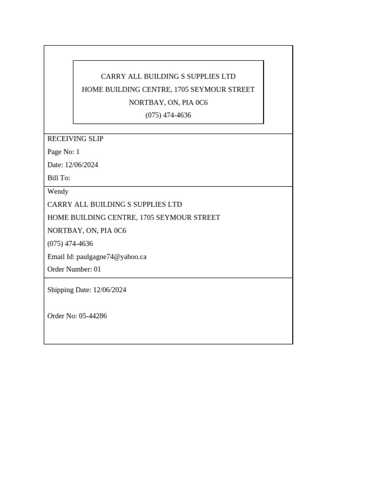 To: CARRY ALL BUILDING S SUPPLIES LTD