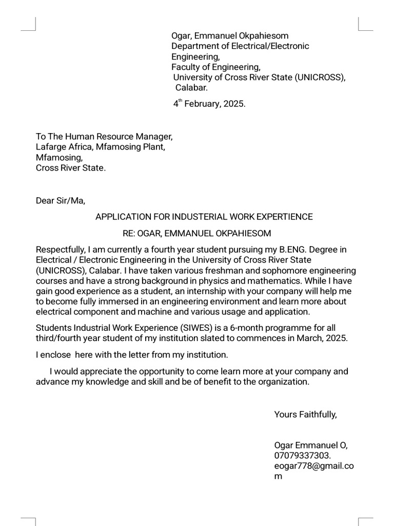 APPLICATION FOR INDUSTERIAL WORK EXPERTIENCE