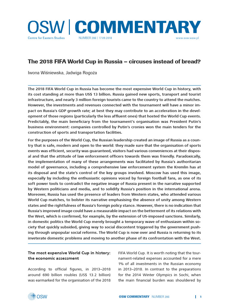 The 2018 FIFA World Cup in Russia – circuses instead of bread?