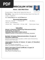 Class/Degree School / College / Institute Year of % of Marks Class / Board /