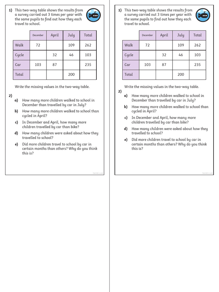 Complete this two-way table by writing Complete this two-way table by writing