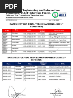 DATE SHEET: SPRING SEMESTER 2017 : FINAL EXAMINATION JULY-AUGUST 2017