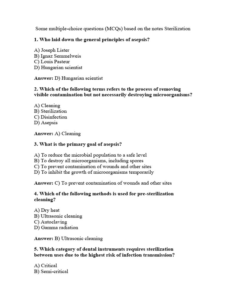 Some multiple-choice questions (MCQs) based on the notes Sterilization